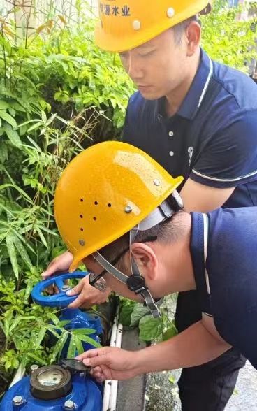 (河源市水业集团工作人员现场检查供水压力、水质等情况)