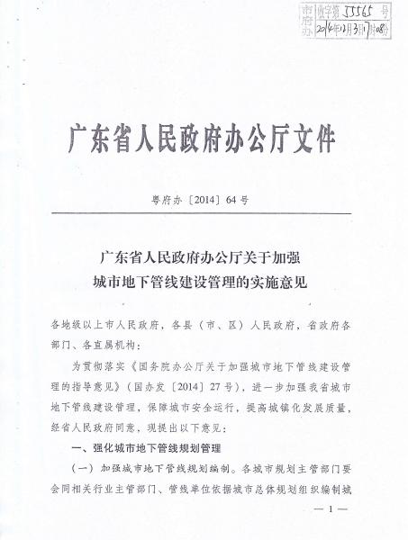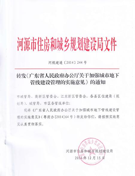 转发《广东省人民政府办公厅关于加强城市地下管线建设管理的实施意见》的通知