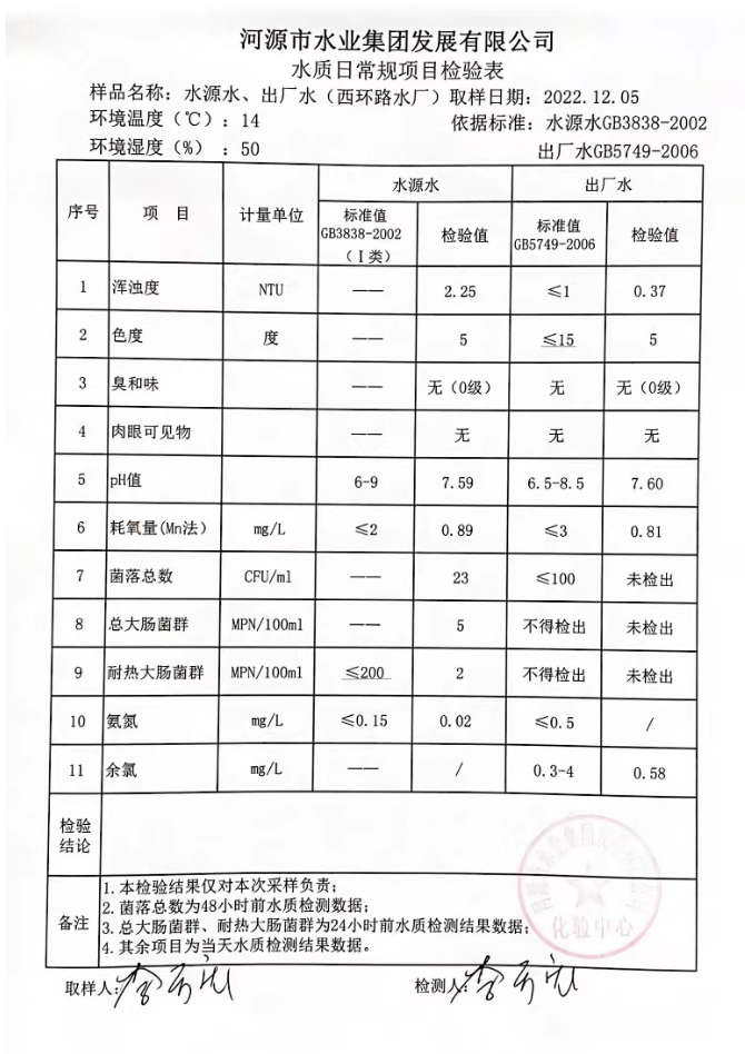 2022年12月4日水质检验报告