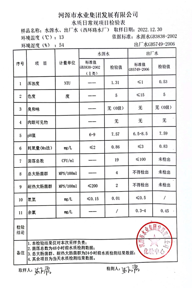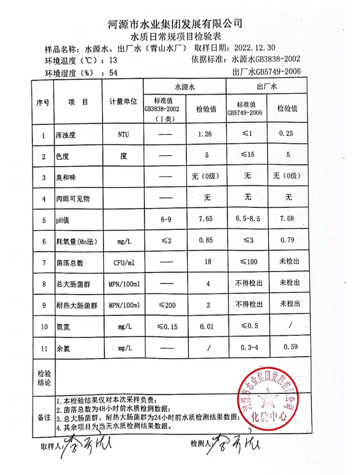 2022年12月30日水质检验报告