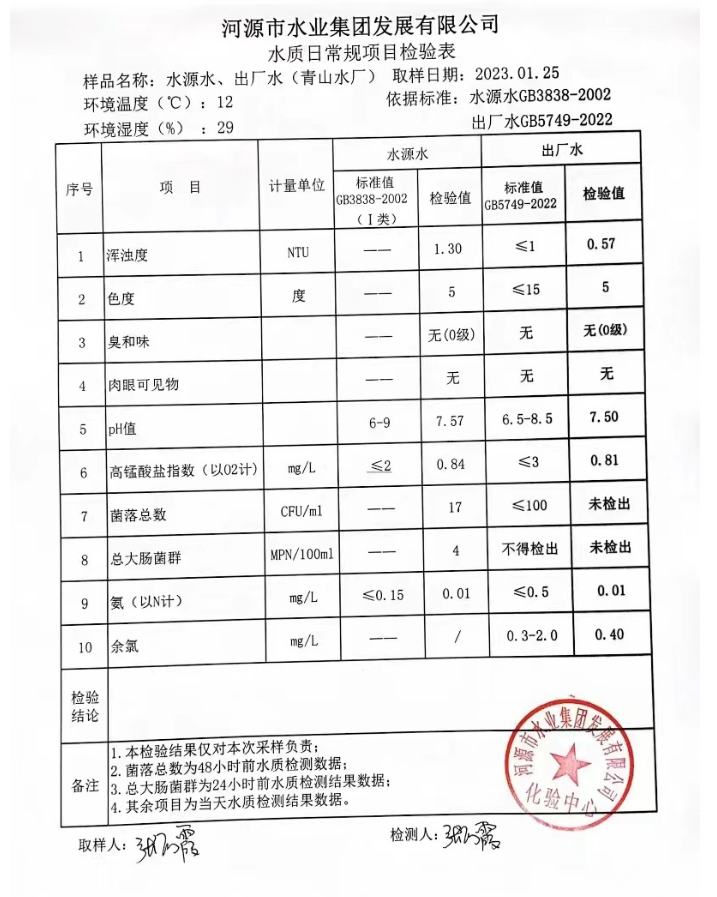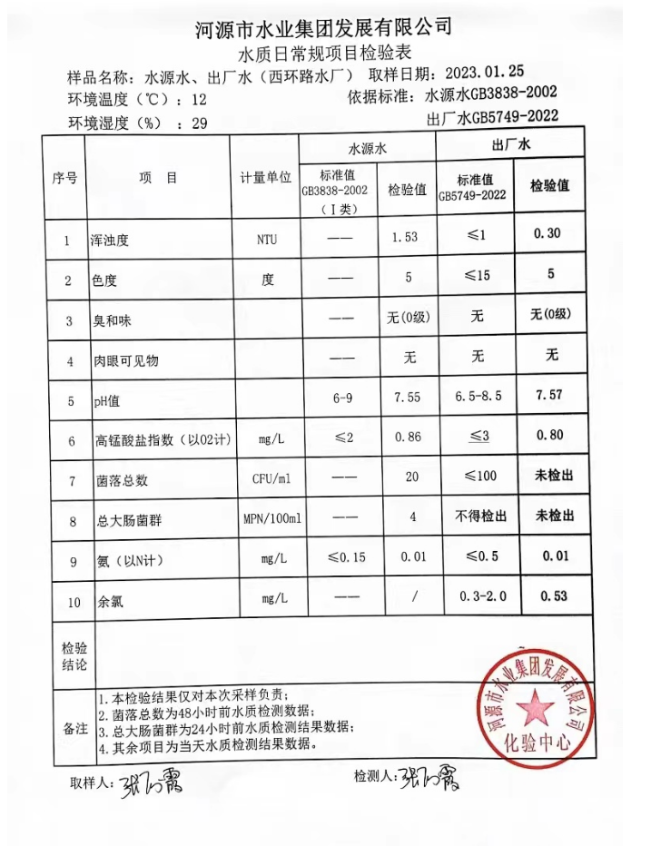 2023年1月25日水质检验报告