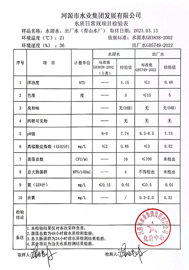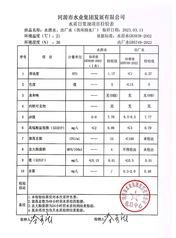 2023年3月13日水质检验报告