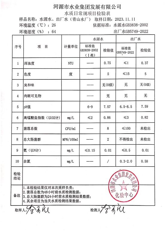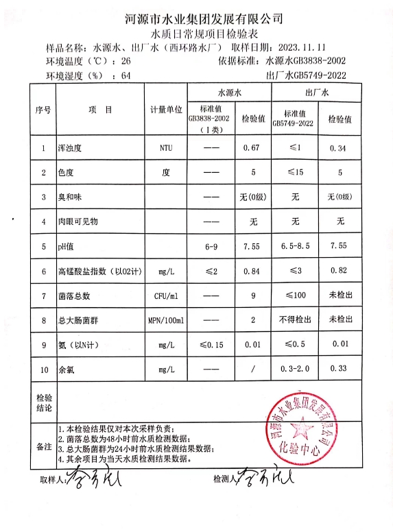2023年11月11日水质检验报告