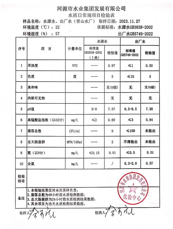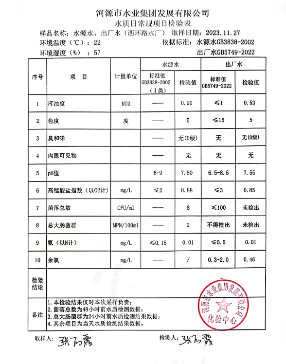 2023年11月27日水质检验报告