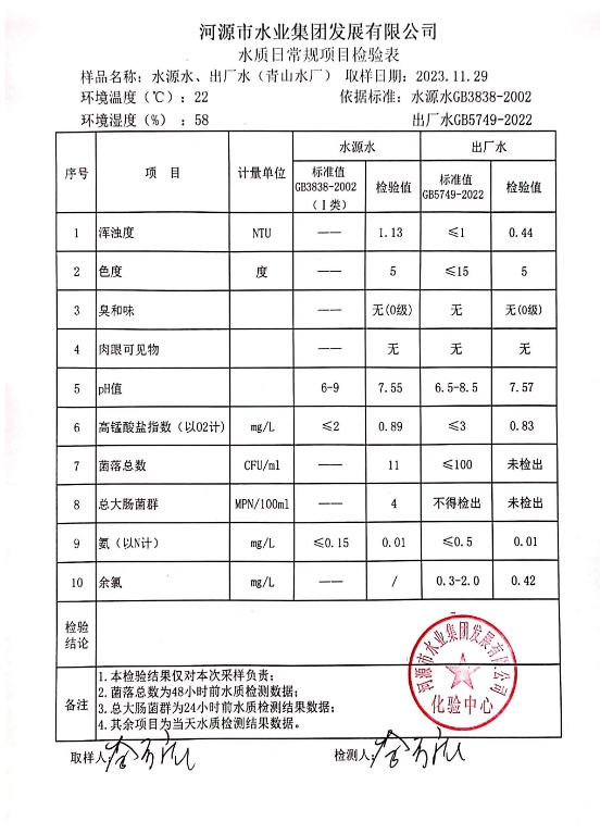 2023年11月29日水质检验报告