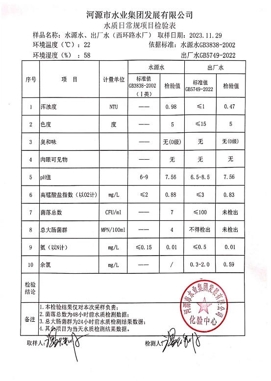 2023年11月30日水质检验报告