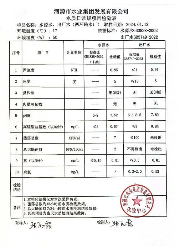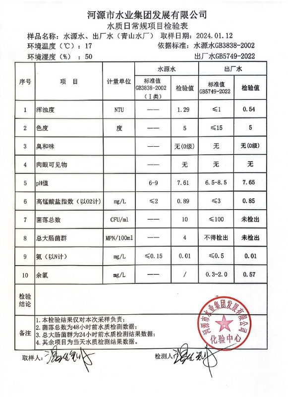 2024年1月12日水质检验报告