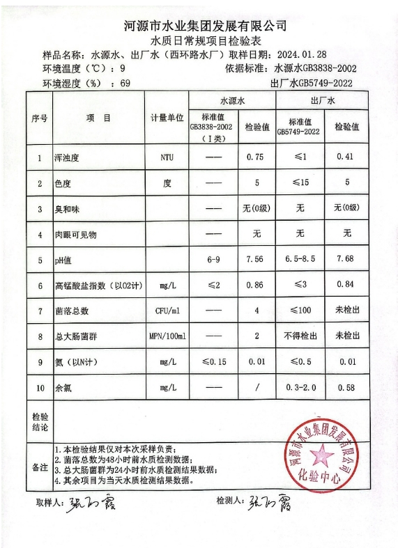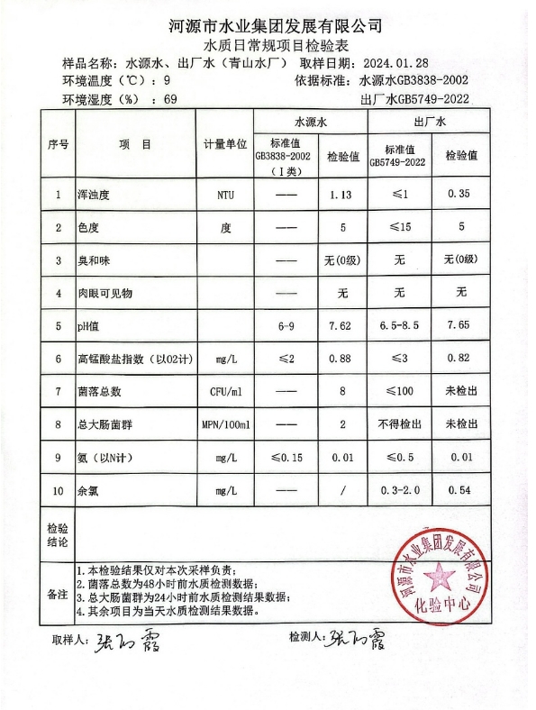 2024年1月28日水质检验报告