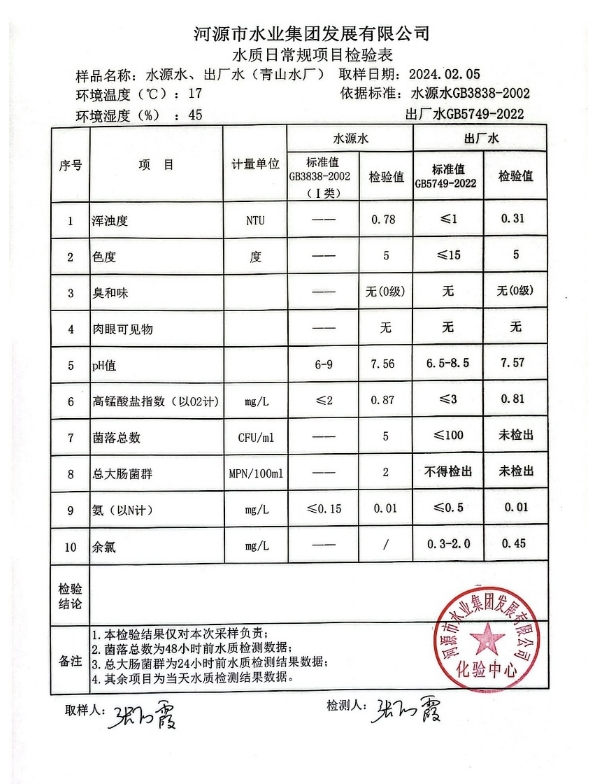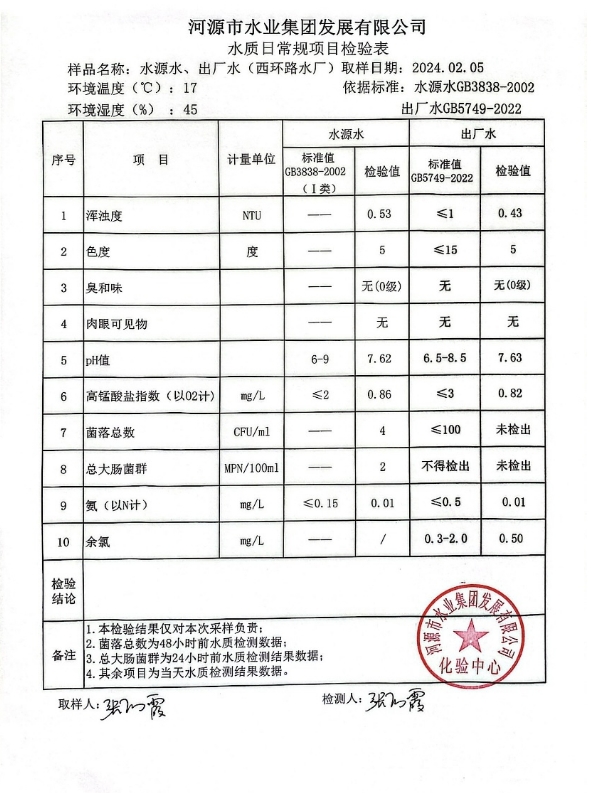 2024年2月5日水质检验报告
