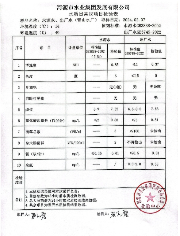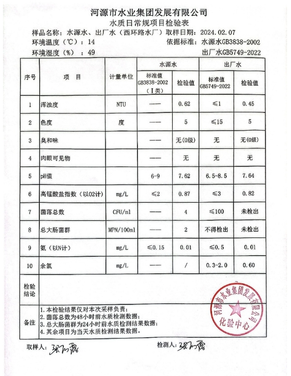 2024年2月7日水质检验报告
