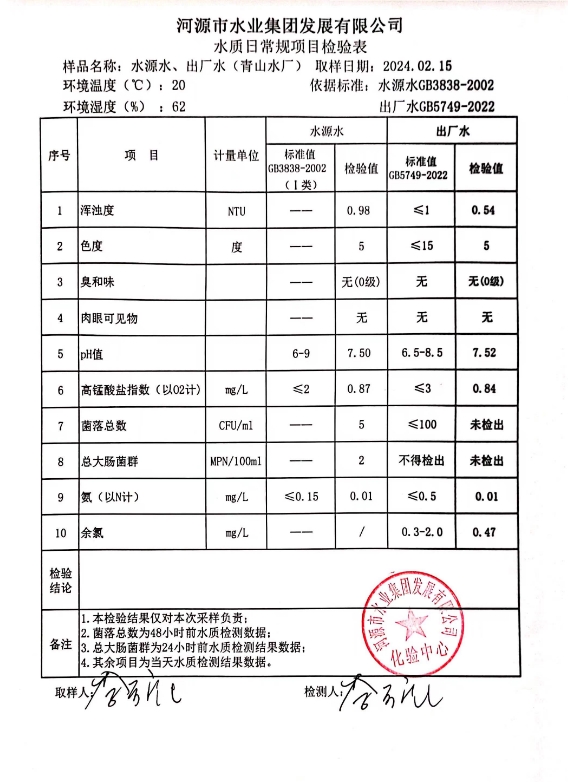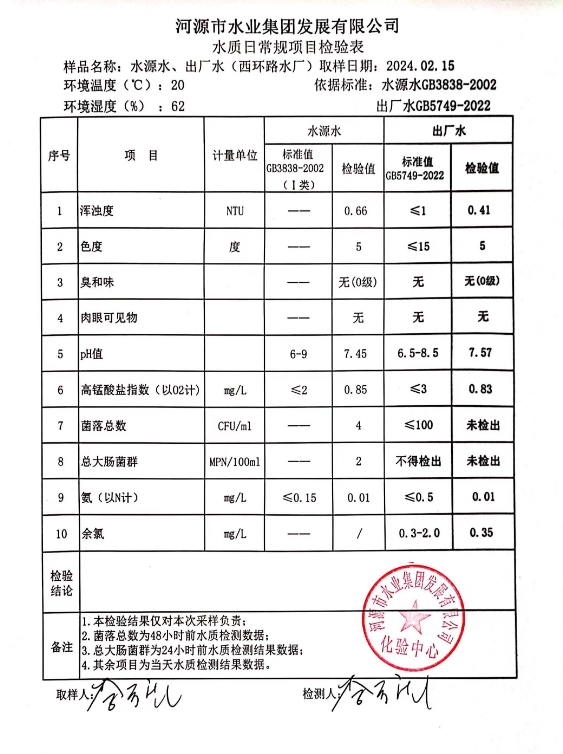 2024年2月15日水质检验报告