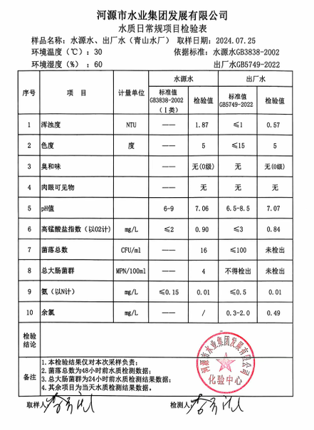2024年7月25日水质检验报告