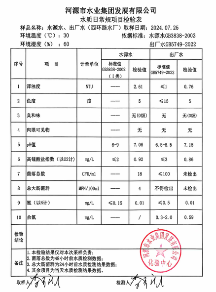 2024年7月26日水质检验报告