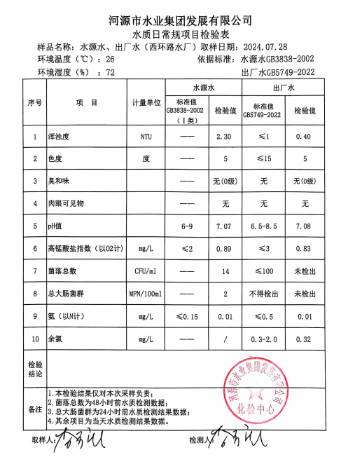 2024年7月28日水质检验报告