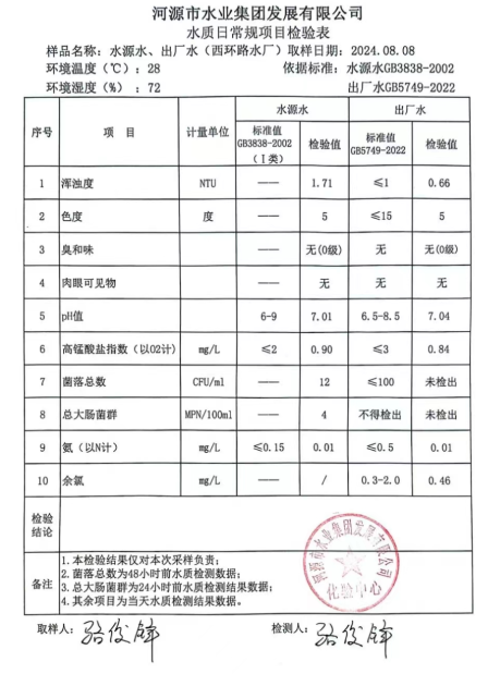2024年8月8日水质检验报告