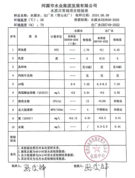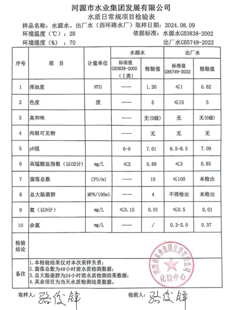 2024年8月10日水质检验报告