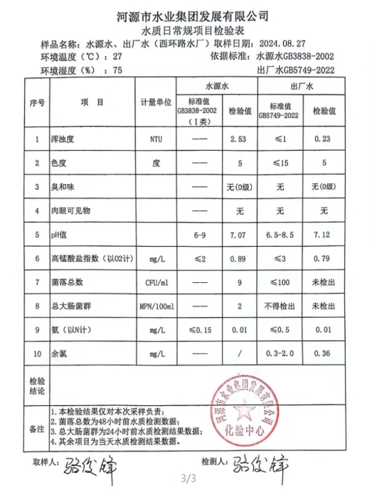 2024年8月27日水质检验报告