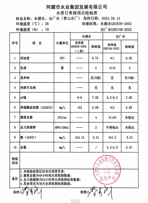 2024年9月15日水质检验报告