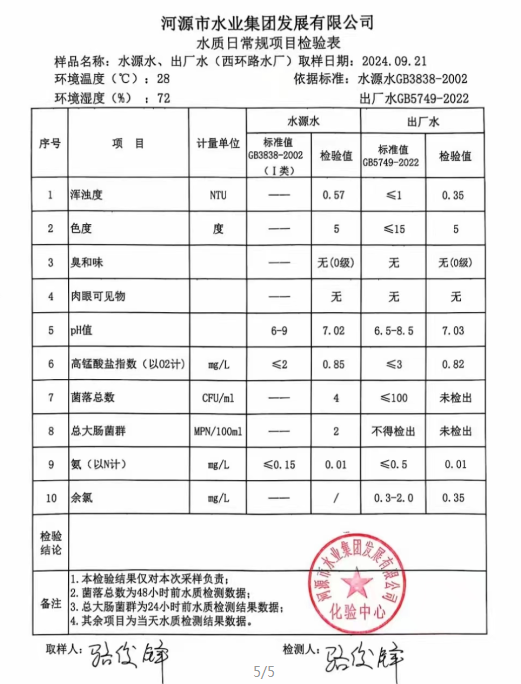 2024年9月21日水质检验报告