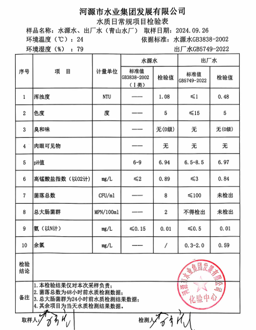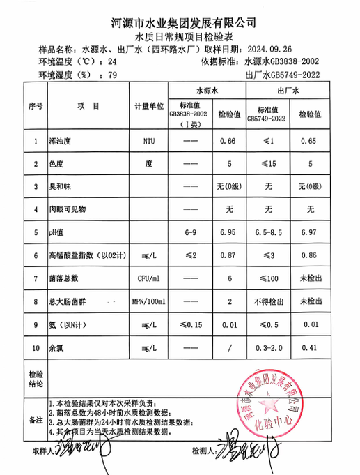 2024年9月26日水质检验报告