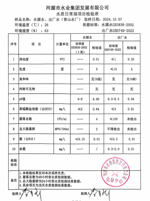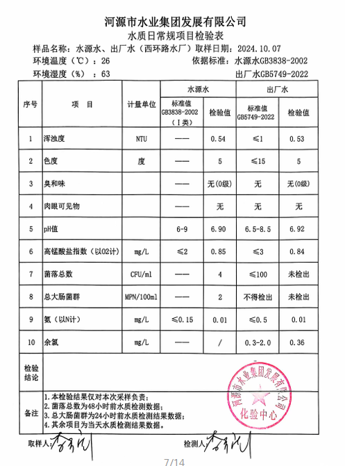 2024年10月7日水质检验报告