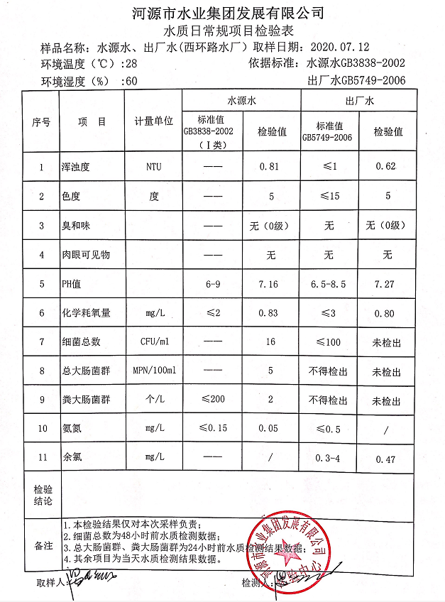 2020年7月12日水质检验报告