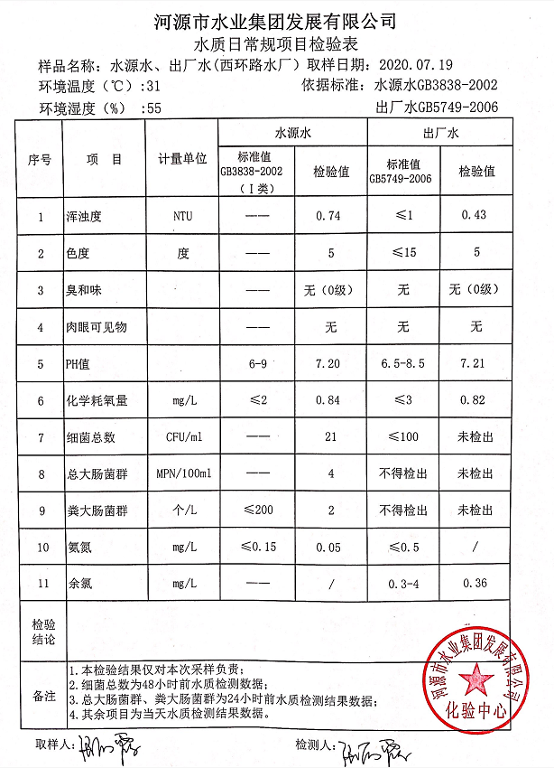 2020年7月20日水质检验报告