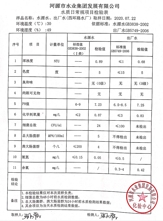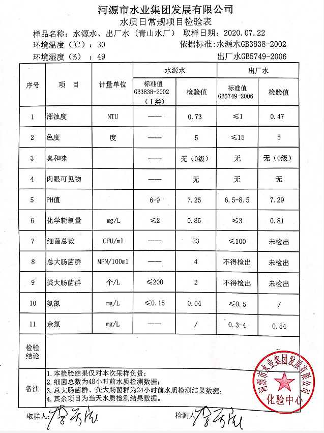 2020年7月22日水质检验报告