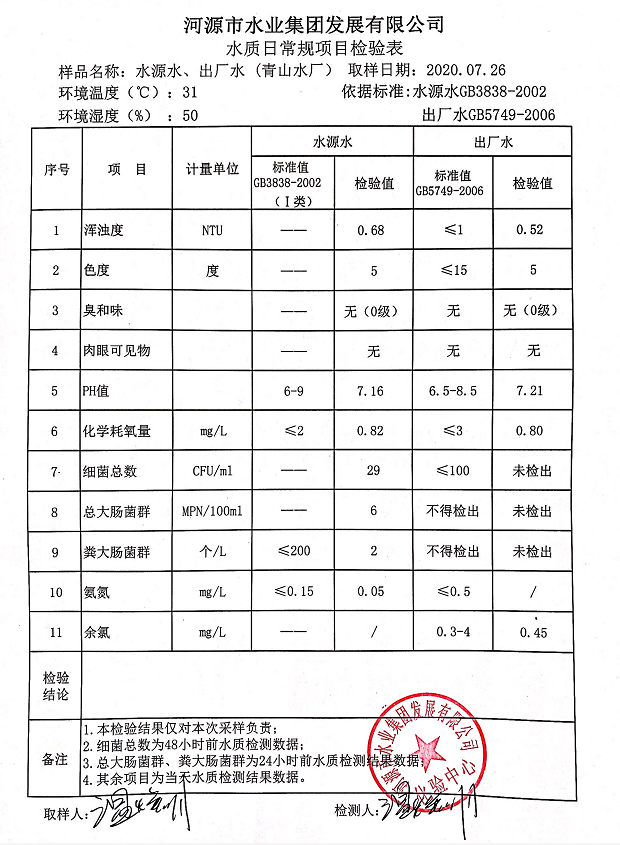 2020年7月26日水质检验报告