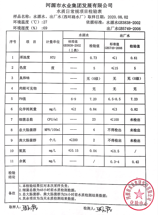 2020年8月1日水质检验报告