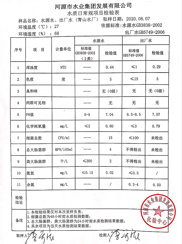 2020年8月7日水质检验报告