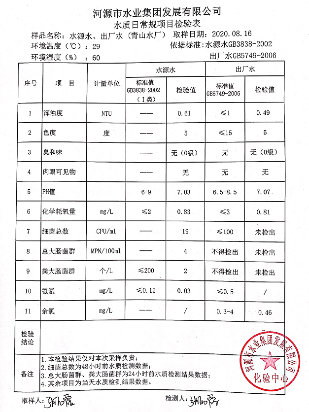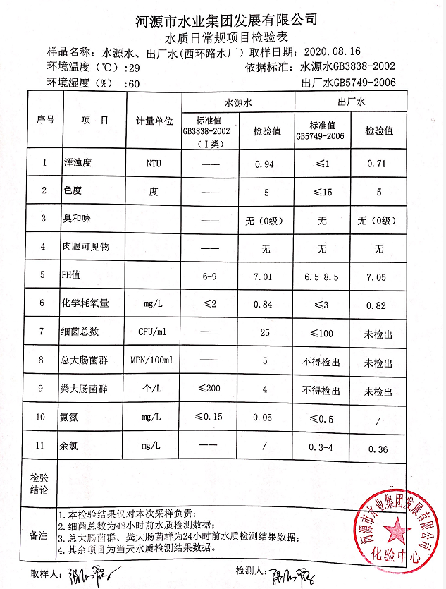2020年8月16日水质检验报告