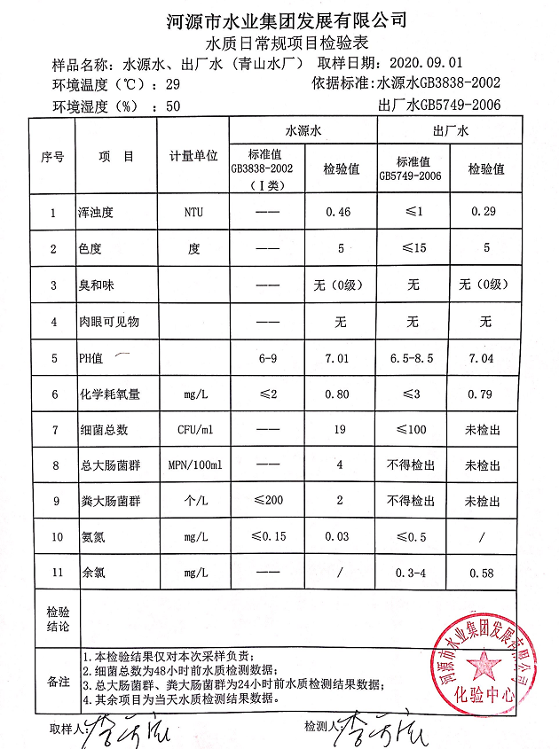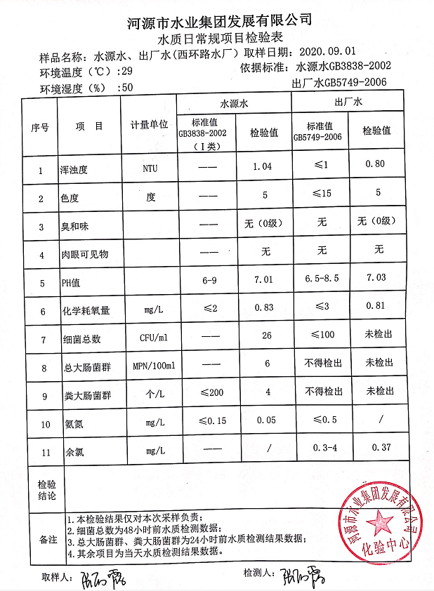 2020年9月1日水质检验报告