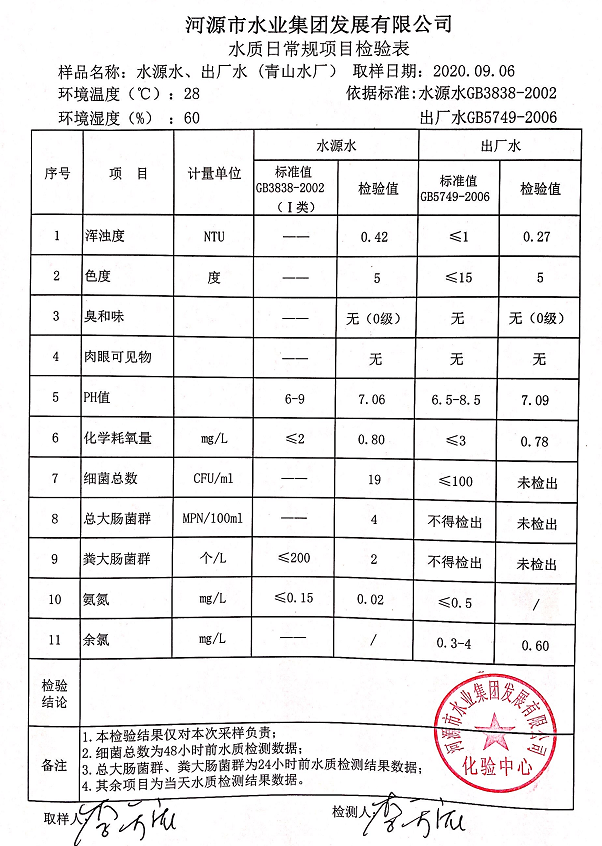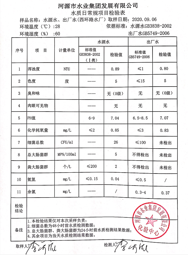 2020年9月6日水质检验报告