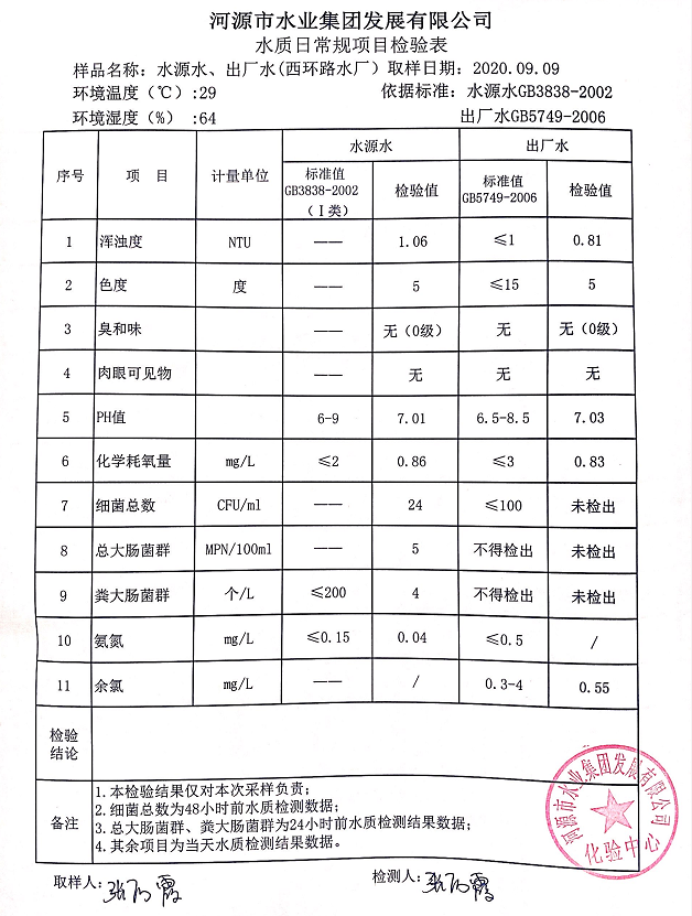 2020年9月9日水质检验报告