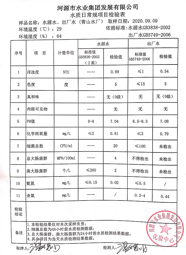 2020年9月8日水质检验报告