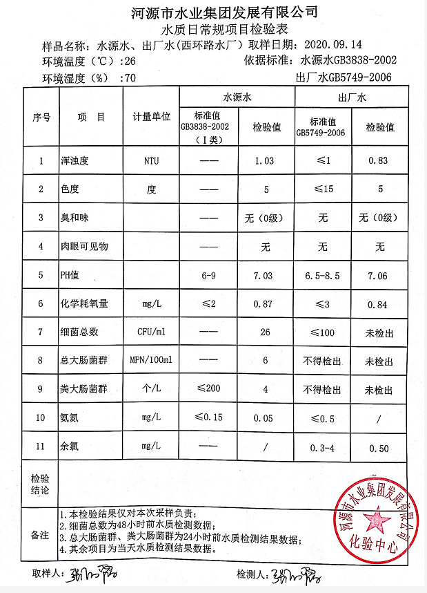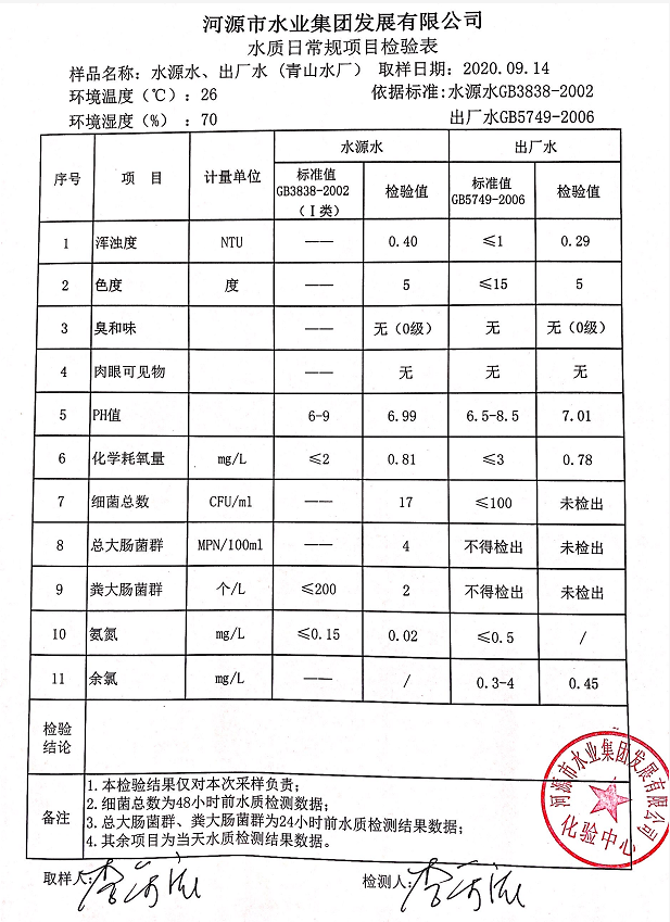 2020年9月14日水质检验报告