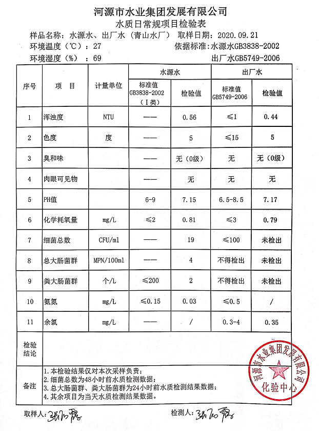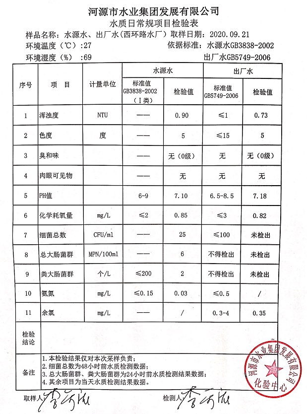 2020年9月21日水质检验报告