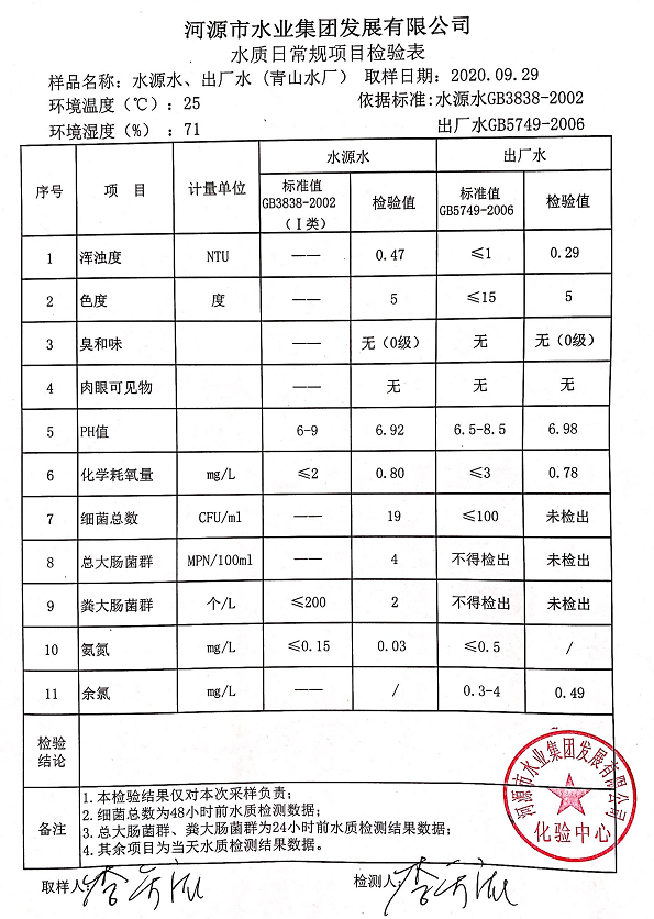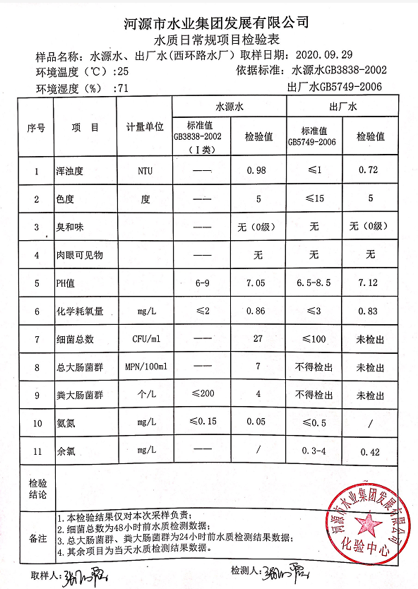 2020年9月29日水质检验报告