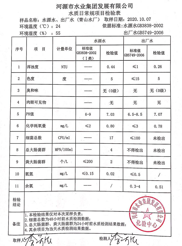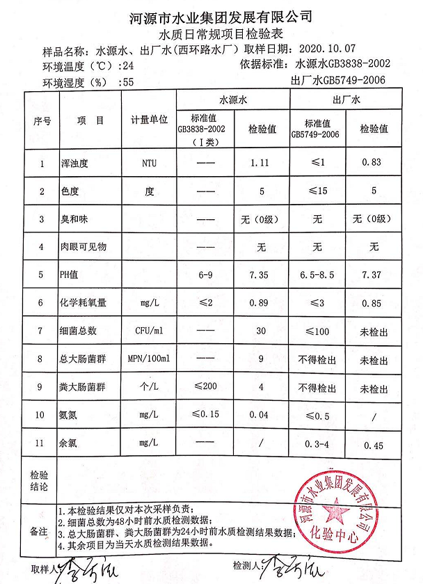 2020年10月7日水质检验报告