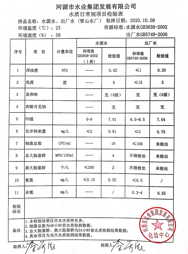 2020年10月10日水质检验报告