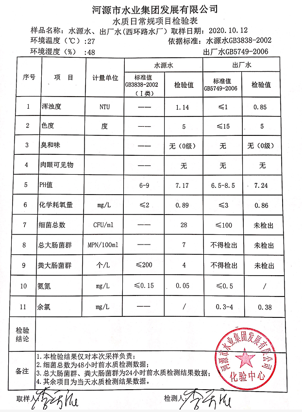 2020年10月12日水质检验报告