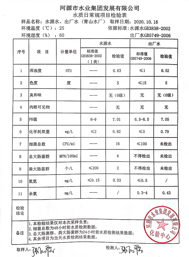 2020年10月16日水质检验报告