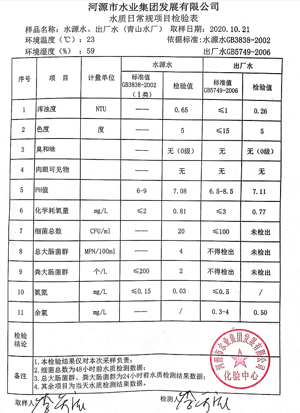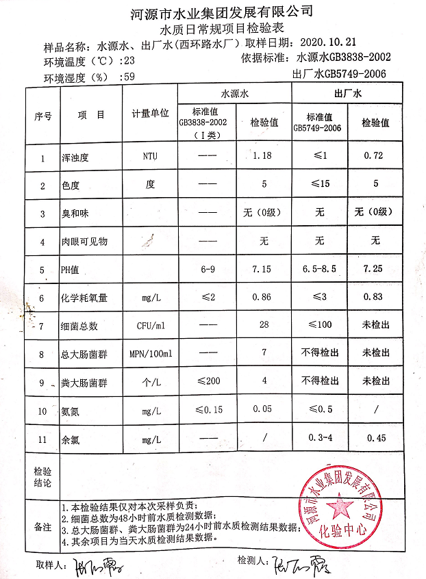 2020年10月21日水质检验报告