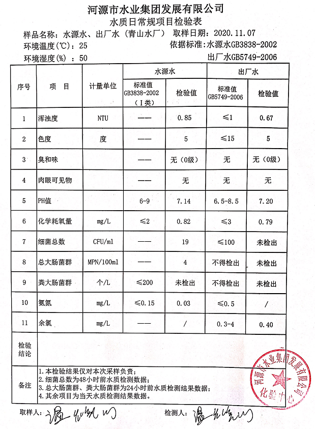 2020年11月7日水质检验报告