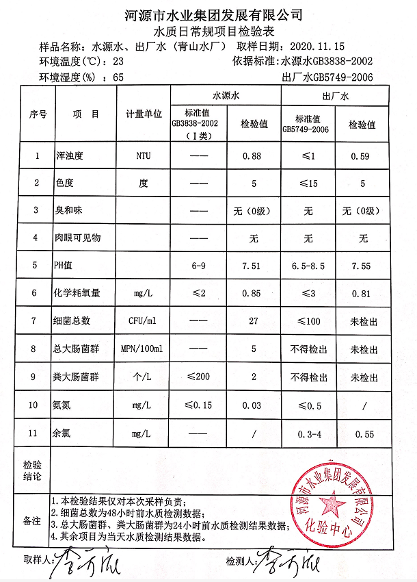 2020年11月15日水质检验报告