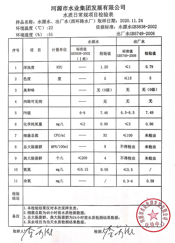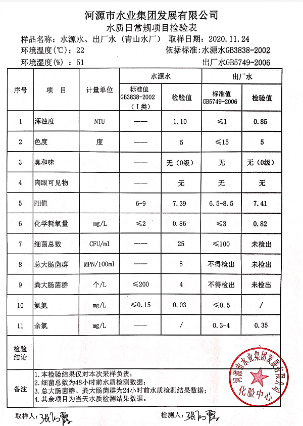 2020年11月24日水质检验报告
