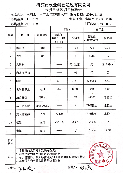 2020年11月28日水质检验报告