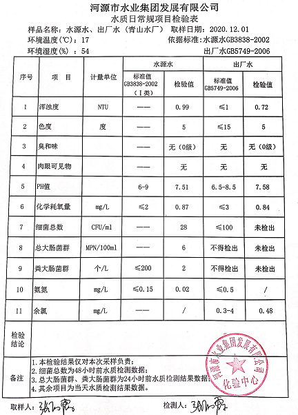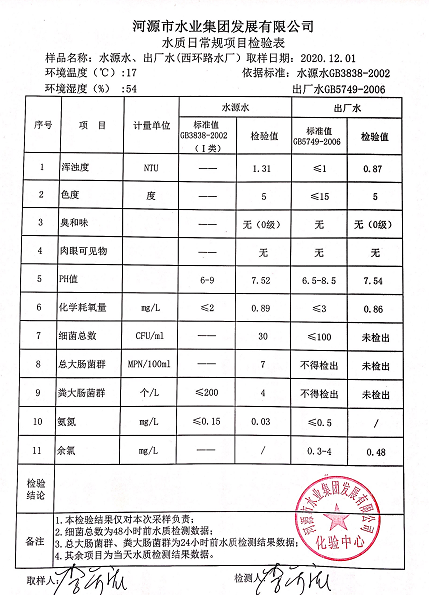 2020年12月2日水质检验报告
