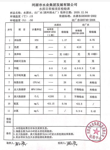 2020年12月4日水质检验报告